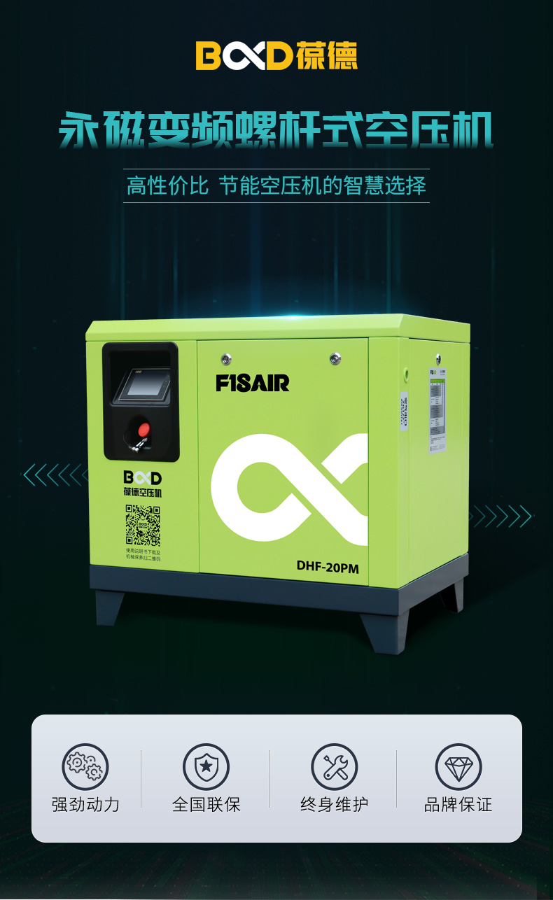 大黃蜂永磁變頻空壓機(jī)特點(diǎn):永磁同步電機(jī)采用釹鐵硼永磁體,葆德一體式主機(jī),新一代型線設(shè)計(jì),低噪音,低維護(hù)費(fèi)用,可靠,穩(wěn)定,型號(hào):DHF-10PM、DHF-15PM、DHF-20PM、DHF-30PM